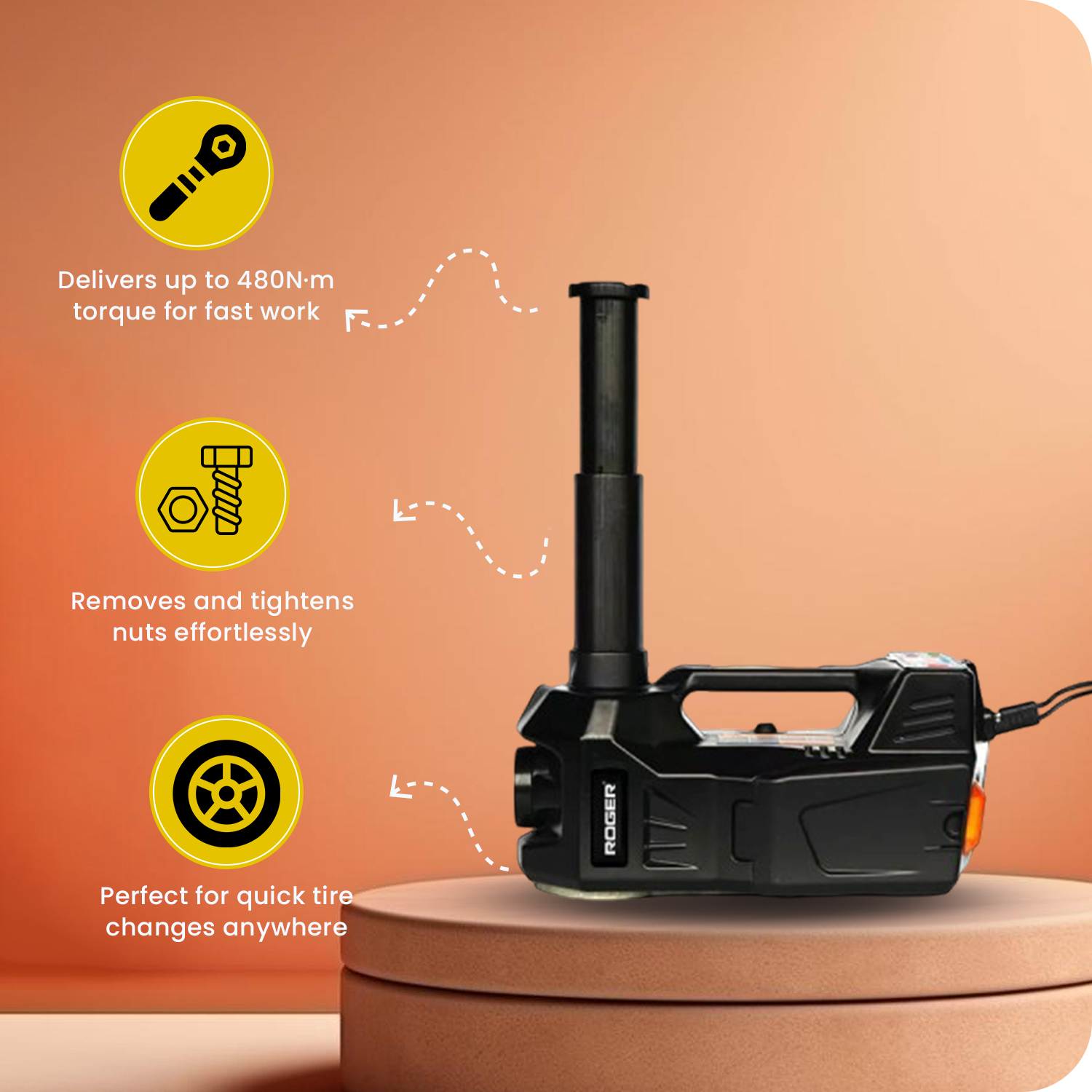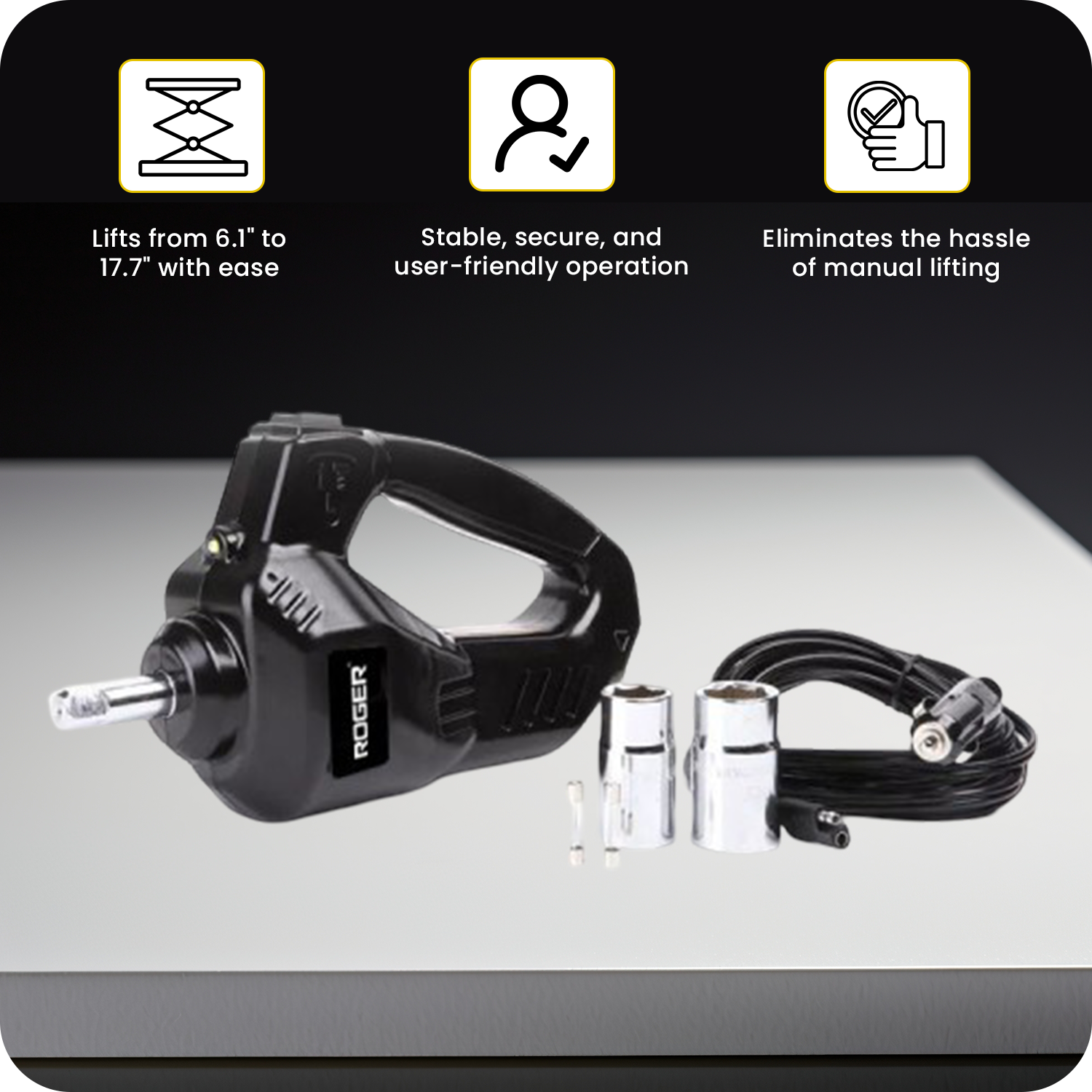 ROGER Electric Car Jack 3 Ton 12V โ All-in-One Scissor Jack with Inflator Pump, 120-370/170-420MM Lifting Range, Ideal for Sedans and SUVs, Car Repair Tool