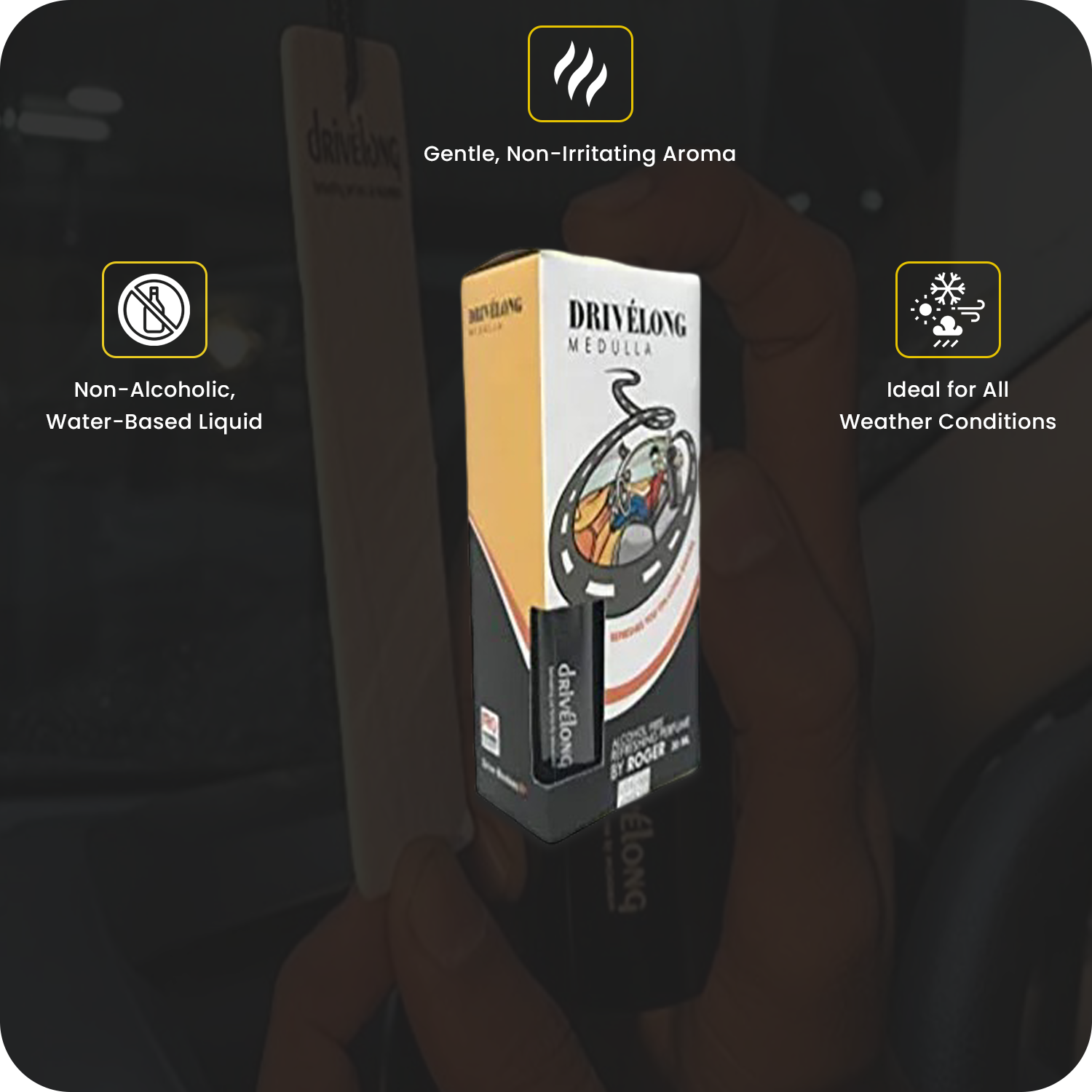 The Drive long Medulla variant delivers a refined, mellow scent ideal for daily drives, road trips, or moments when you need a calm, clean atmosphere in your car.