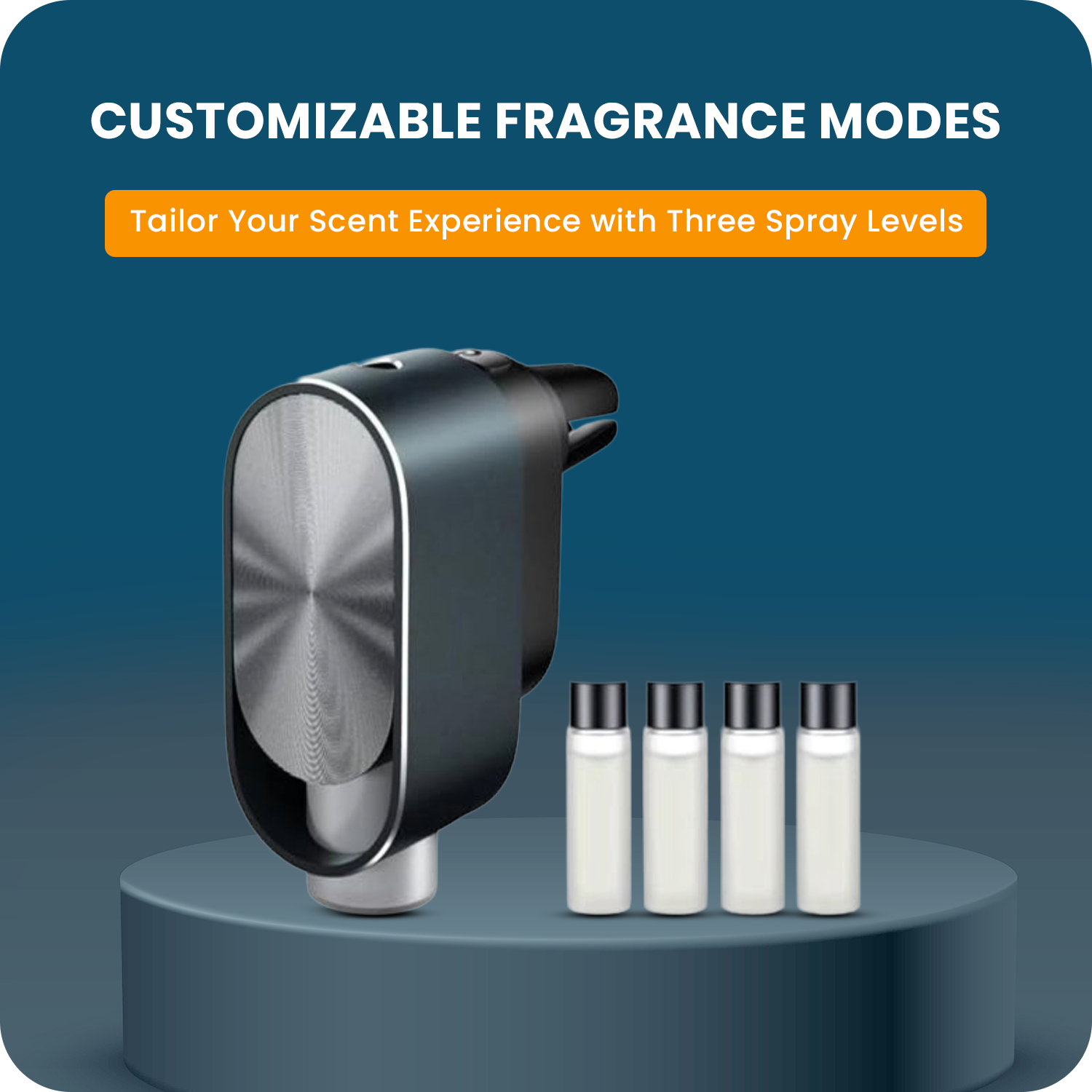 Customise your in-car scent with three spray intensity levels—Light (green), Medium (blue), and Thick (purple). Each mode controls spray intervals for a tailored fragrance experience.