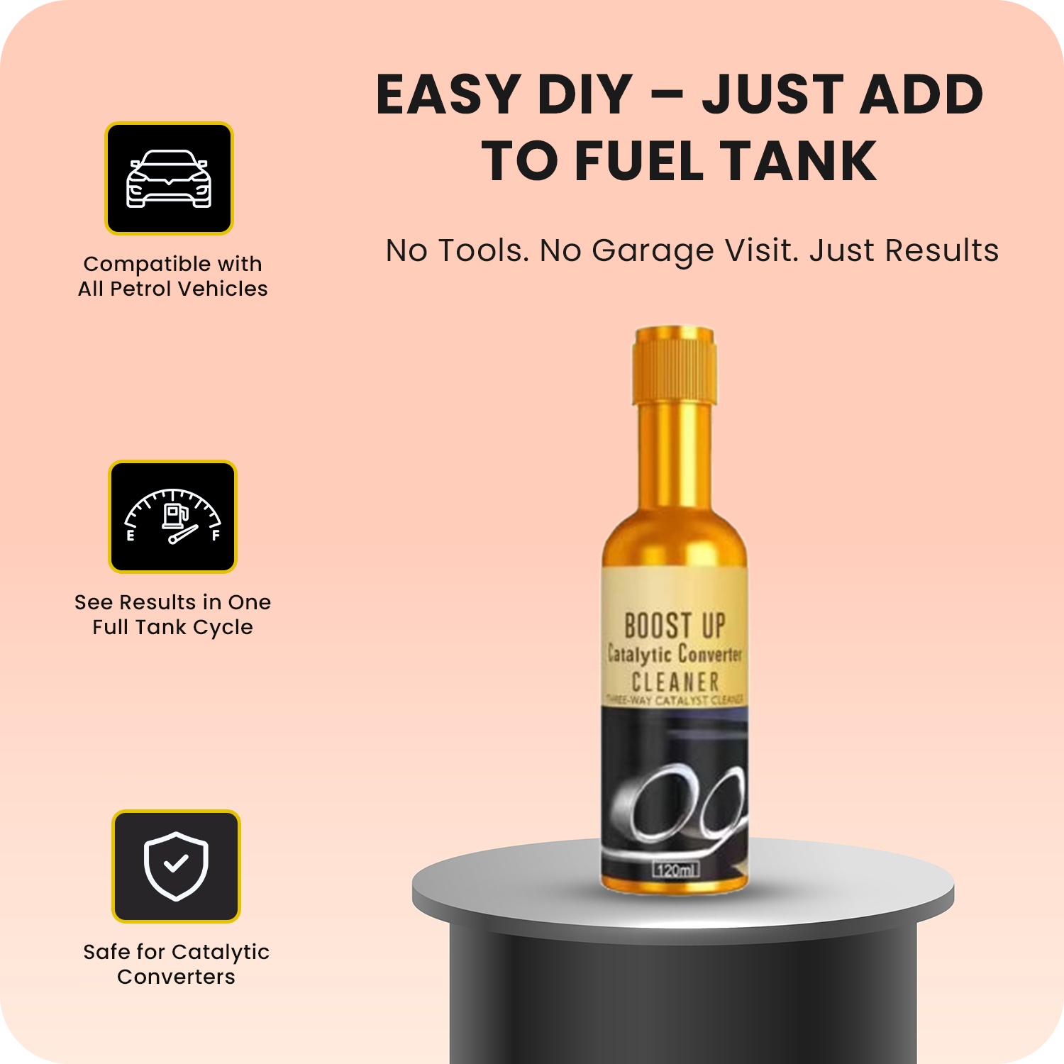 Cleans carbon build-up from the catalytic converter, oxygen sensors, exhaust valves, and the entire exhaust system, revitalizing engine function without the need for disassembly.