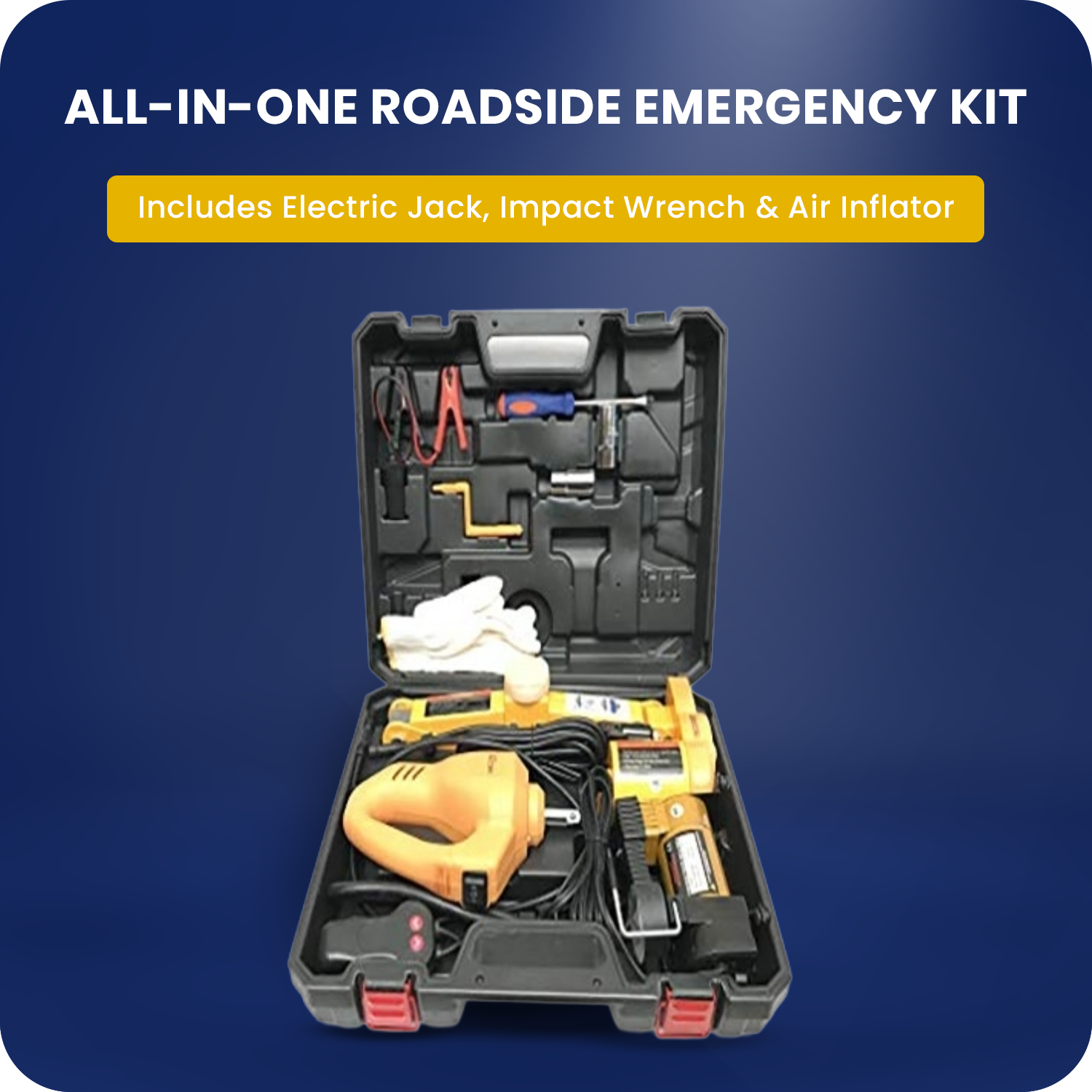 The Roger Electric Scissor Jack Kit combines a 3.0-ton jack, impact wrench, and inflator pump—perfect for roadside emergencies or at-home garage repairs. Compatible with sedans, vans, SUVs, and off-road vehicles within its lifting range, it covers all your essential tyre-changing needs.