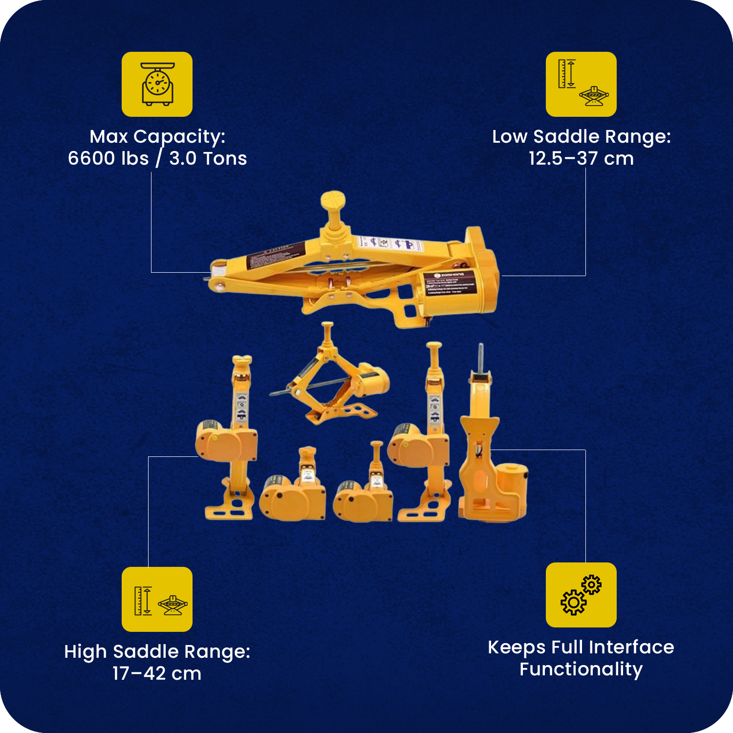 Designed for quick and easy operation, the electric jack features low (12.5–37cm) and high (17–42cm) saddle options. With the push of a button, lift your vehicle safely in minutes—no manual effort required. The included impact wrench makes removing and tightening lug nuts fast and hassle-free.
