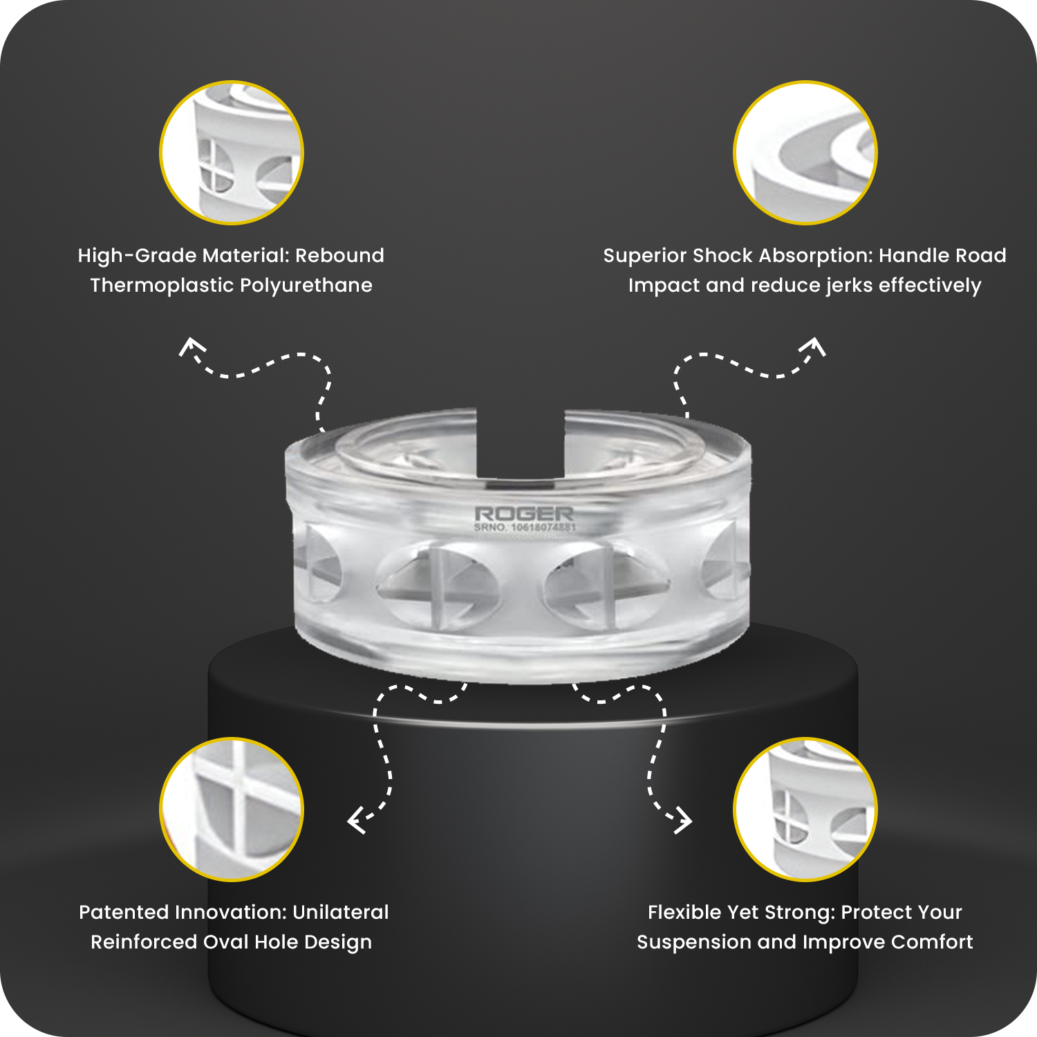 Say goodbye to bumpy rides with Rogerab Car Suspension Buffers. Designed to absorb road jerks and reduce body roll, this patented ARAI-tested kit delivers unmatched driving stability across all SUVs and cars. Whether it's potholes, speed breakers, or uneven highways, Rogerab gives your suspension system the upgrade it deserves. Enjoy safer turns, smoother drives, and a confident ride every time you hit the road.