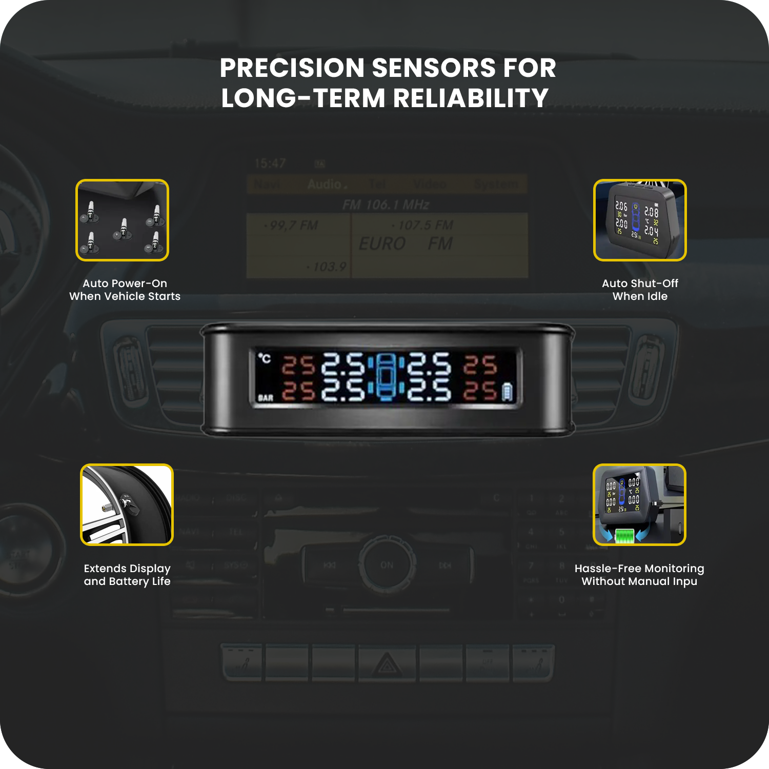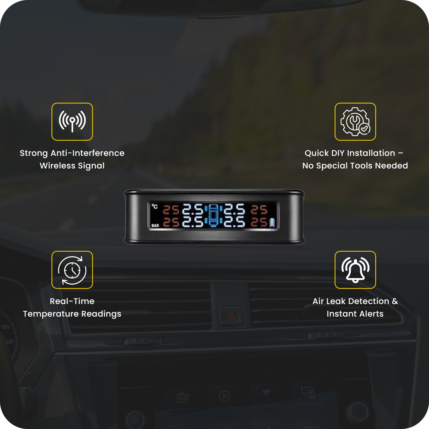 • Live Tire Health Data on LCD Display